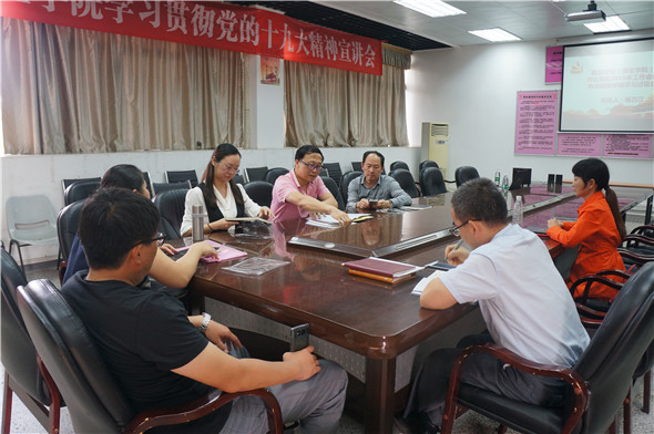 5月29日下午,太阳城党总支在艺术楼B301会议室召开全面彻底肃清李嘉、万庆良流毒影响专题学习会。学院中层领导干部、党总支委员、各党支部书记参加了会议,会议由党总支书记杨万江主持。