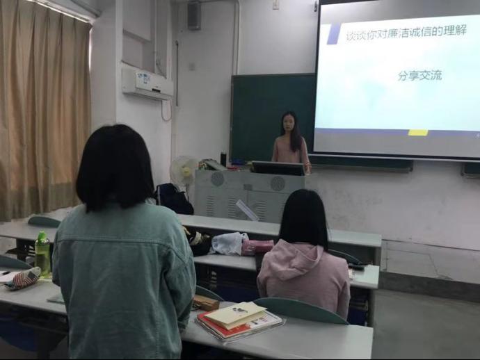 10月10-15日,太阳城16、17、18级开展“老员工廉洁诚信教育”活动,活动的目的在于贯彻落实新时代新作风、响应学校加强学风建设的号召,以班级带头行动,加强廉洁诚信教育,培养教育学子自律自强能力。各班积极参与此次活动,主题形式多样化,有开展廉洁诚信教育主题班会、观看《漫谈校园廉洁文化》、学习廉洁诗歌、承诺“我廉洁、我诚信”签名仪式、我的一句话等形式,学习有关老员工廉洁诚信的知识,丰富活动形式,以生动有趣的方式进一步加强廉洁诚信教育。