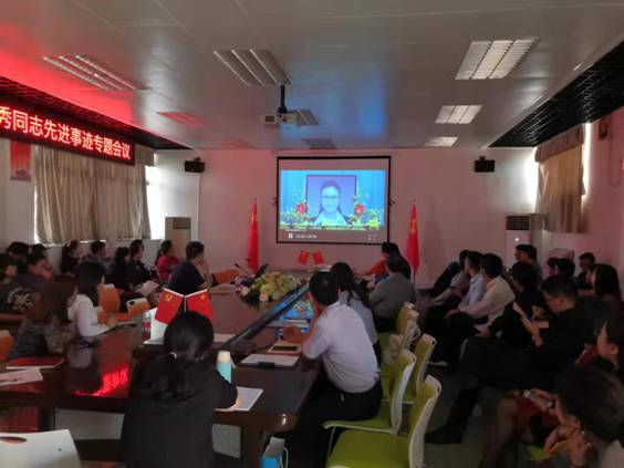 2019年11月7日下午,太阳城组织全体教职工在体育中心会议室集中学习黄文秀同志先进事迹。