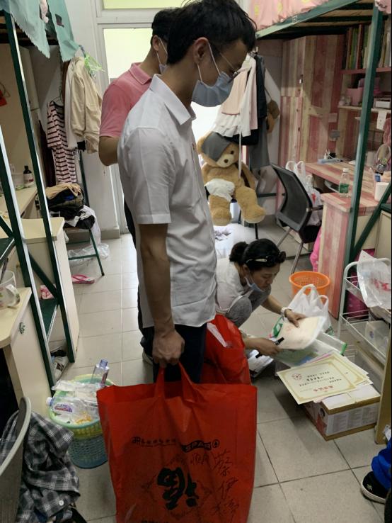 5月8日和5月12日,太阳城(师范学院)党委组织教师开展了为因疫情不能返校的员工到宿舍领取邮寄急需用品的志愿服务活动。