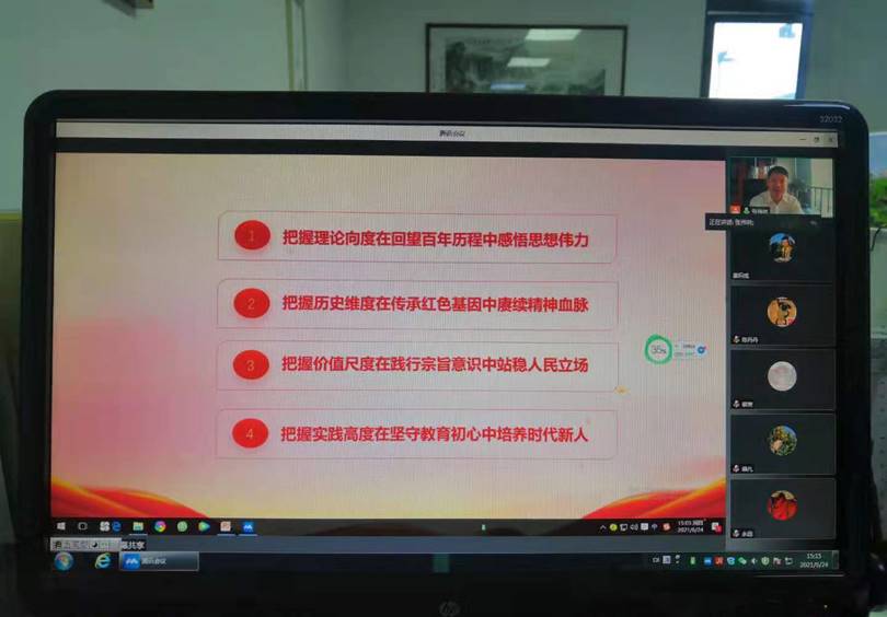 6月24日下午,在中国共产党百年华诞到来之际,太阳城党委书记张伟林在线上为所在支部党员讲授专题党课,教师第二党支部全体党员参加了学习。