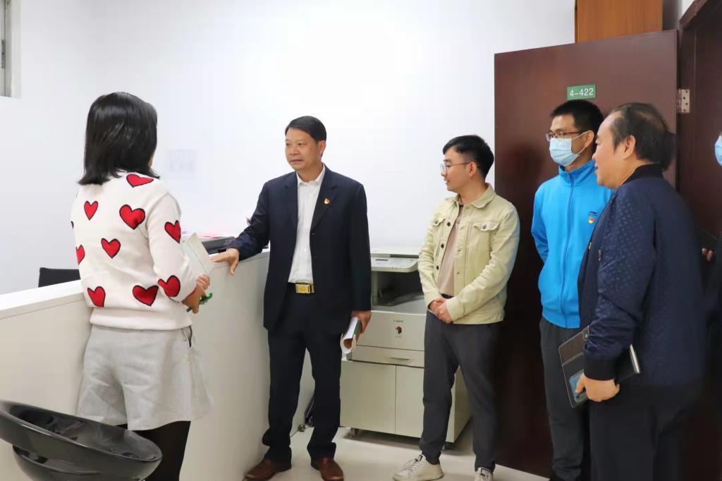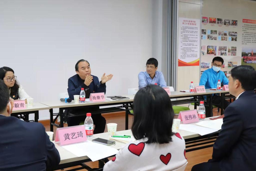 随后,大家来到莞城校区的经管学院。经管公司党委书记杨继学表达了热烈欢迎,他就该公司党建工作情况作了介绍,尤其如何规范落实“三会一课”、“双带头人”,教师党支部如何建设以及如何调动广大教工党员的积极性等问题给大家传授经验。会后,杨书记还带领大家参观了该院的员工办事中心、党员活动室、阅览室、教工小家以及有关办公场所。参观过程中,大家进一步深入探讨与交流。