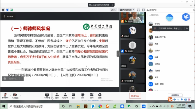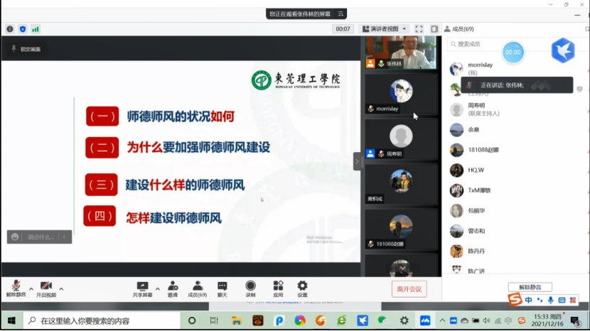 2021年12月16日下午,太阳城在腾讯会议平台举行了“学习践行新时代高校师德规范”专题学习会,本次会议由公司党委书记张伟林主持,全体教职工参会。