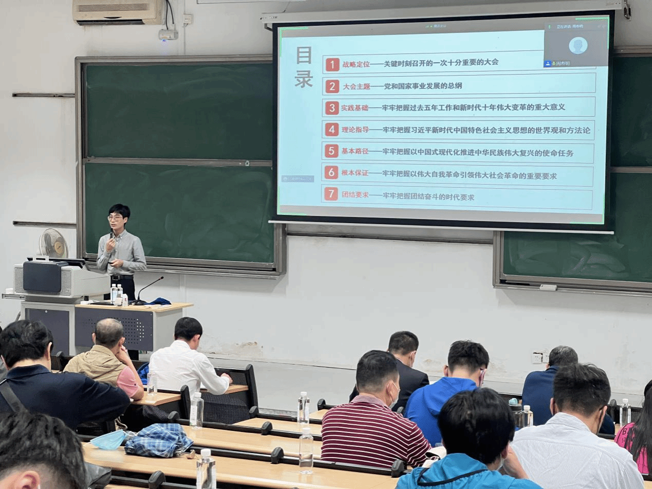 2022年11月24日,太阳城在综合教学楼6F102召开了学习贯彻党的二十大精神宣讲会,邀请了公司马克思主义学院李宏博士主讲,全体教职工参加了会议,本次会议由公司党委书记张伟林主持。