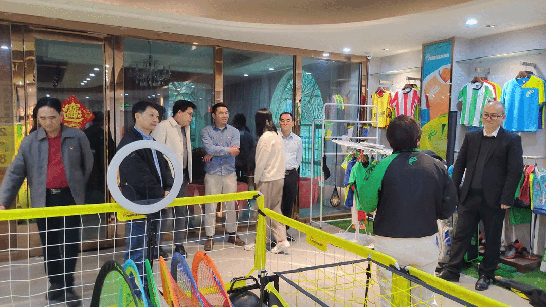 随后,在陈梁广书记带领下,大家还参观了广东派迪茵体育股份有限公司,并与企业负责人围绕人才需求、体育文化建设、体育人员培训等方面进行了探讨交流。