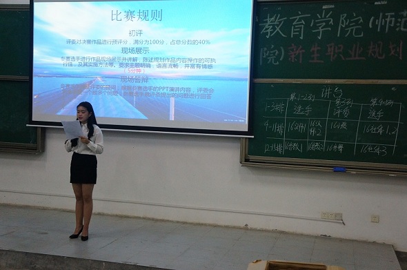 比赛在主持人热情洋溢的开场词中拉开帷幕。现场选手们借助精美细致的PPT,信心十足地在讲台上畅谈起了自己的职业规划。通过对职业环境的分析、自我认知的SWOT分析等方法来确定目标职业,详细制定出职业生涯具体的各时期目标以及相关的实施计划。现场观众们也听得聚精会神。经过一番较量,最终黎盈君同学荣获一等奖;甘文诗、周颖琪同学荣获二等奖;李煜锋等三位同学荣获三等奖,陈淑明等四位同学荣获优秀奖。