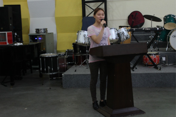 员工会副主席吴洁英发言