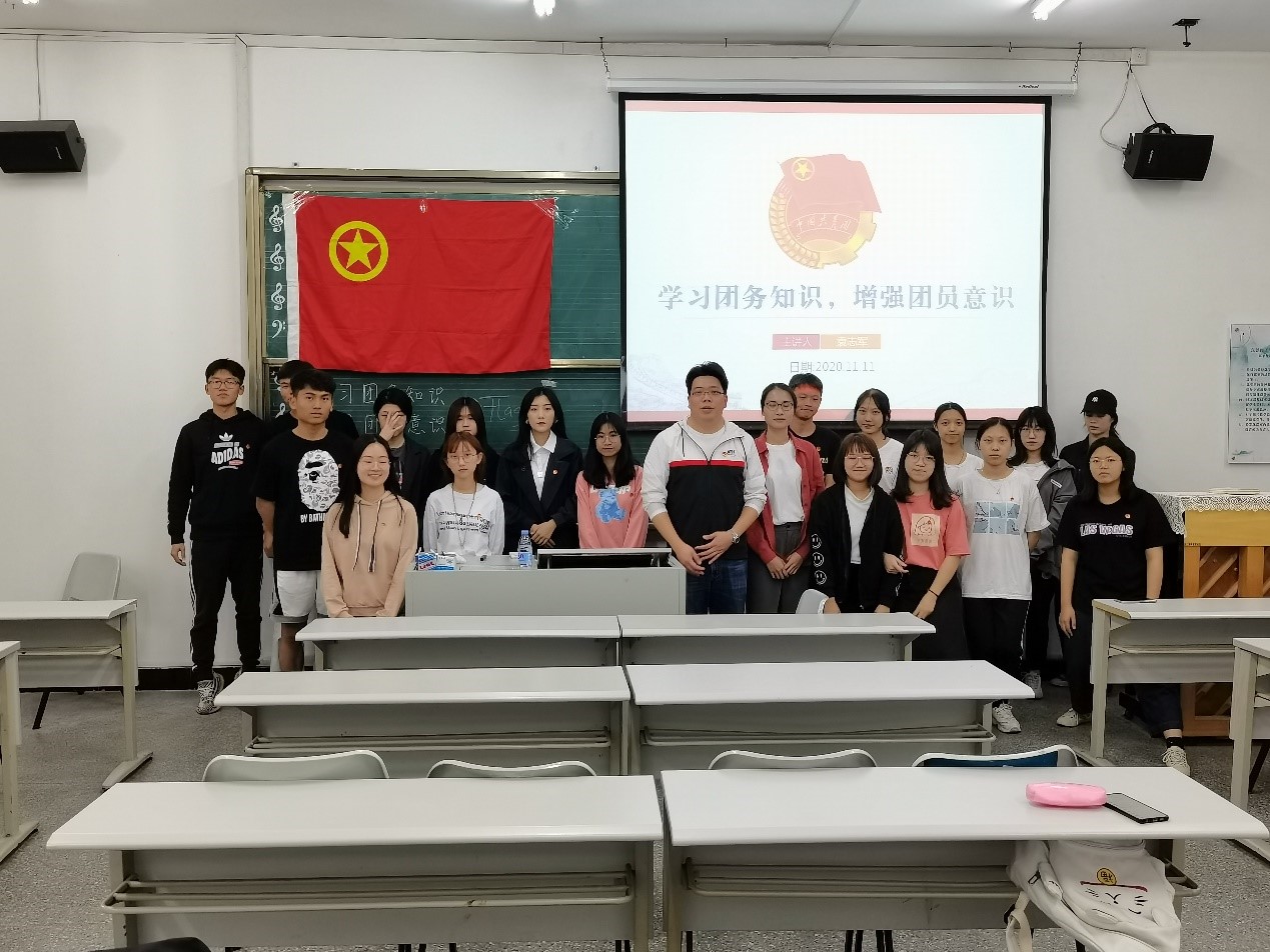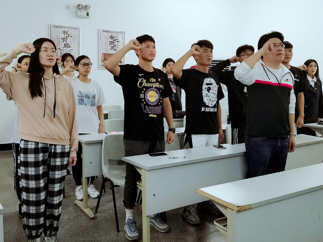 最后,袁老师和在场同学们一起重温入团宣誓誓词,进行了庄严而神圣的入团宣誓,并高唱中国共青团团歌。至此,本次团课授课完成。