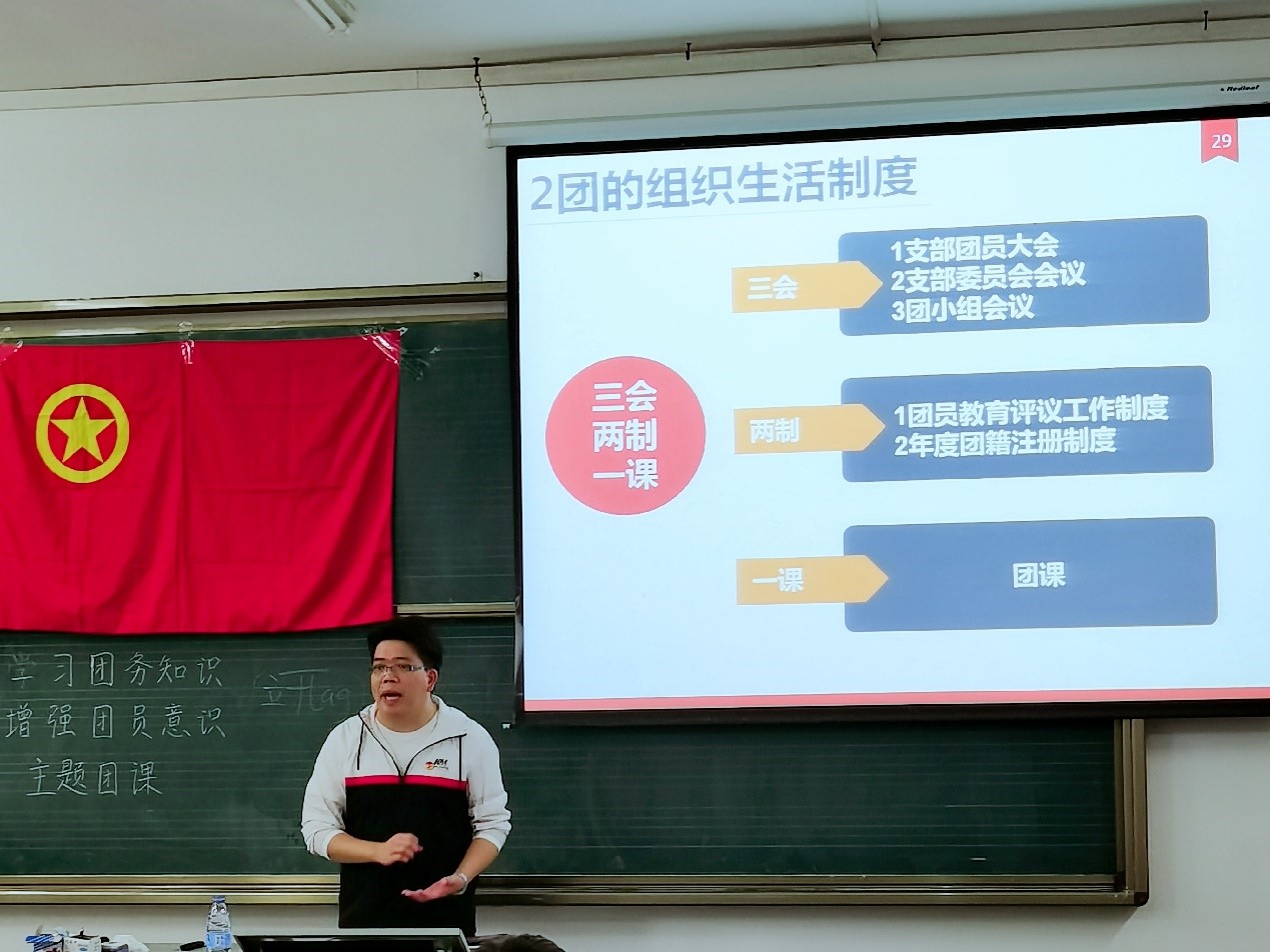 接着,袁老师强调了团的组织生活是团支部建设的重要部分。袁老师通过介绍组织生活的基本原则、作用意义、内容形式和制度内容,为组织生活的建设提供发展的方向。组织生活的建设要结合思想性、政治性、原则性等特点,注重思想性和教育性,讲究实际效果,不搞形式主义,要遵循三会两制一课的组织生活制度。