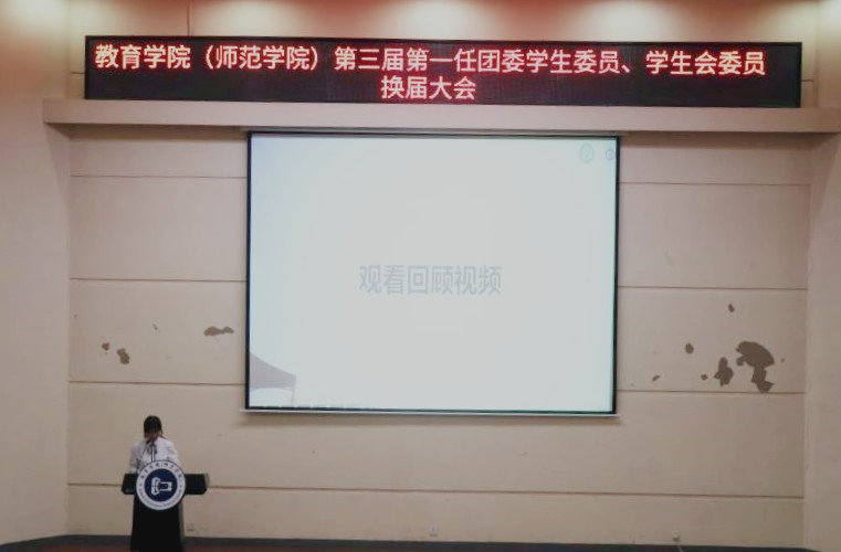 会议伊始,全体奏唱中华人民共和国国歌、观看回顾视频。党委副书记黄艺琦上台发言,黄书记总结了去年学院的情况并感谢每一位在过去一年里为学院的发展作出贡献的同学。