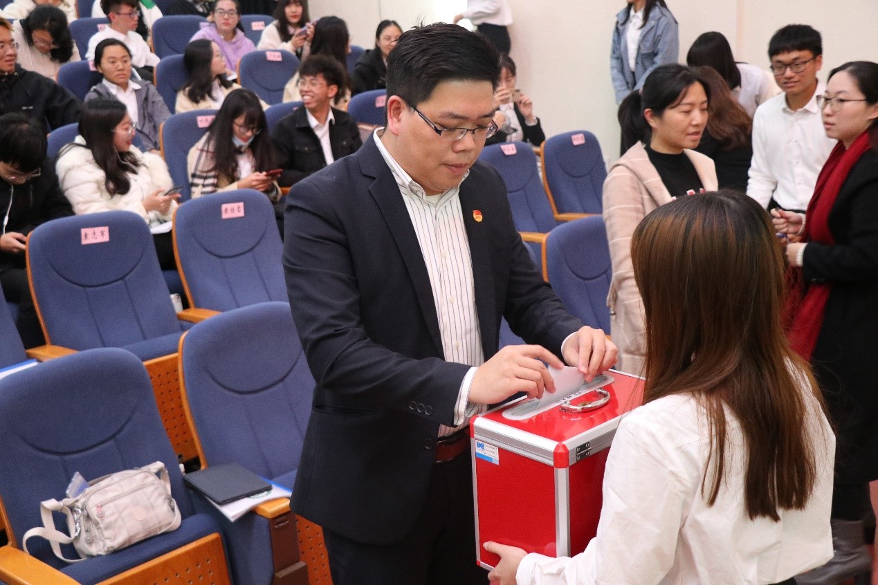 接下来是宣读本次换届大会的选举办法以及12位委员候选人演讲。首先是6位团委员工委员候选人演讲,然后是6位员工会委员候选人演讲。各位团委员工委员候选人、员工会委员候选人依次发表竞选演讲并回答即兴问题,由老师们、团学代表、班级代表、以及非参选人员进行匿名投票。