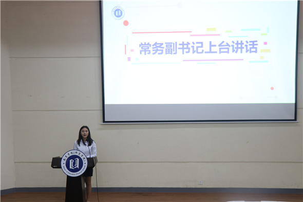 大会开始,全体观看影像,回顾了团学上学期的工作内容。接着,团总支书记袁志军老师老师上台讲话作工作指导,他指出要贯彻落实十九大报告精神,做好体育文化节、勤子学堂等活动,提出员工干部要处理好学习与员工工作之间的关系,提高效率,达到事多不忙乱的状态。接着,团总支副书记香晓彤上台发言,她认为实践方能出真知,亲身去尝试过、努力过,才能够知道最终的结果如何。而后,员工会主席祝月华上台讲话,总结了上学期的工作内容,并对接下来员工干部们的工作提出了相应的要求。其后是团总支部门代表上台讲话、员工会部门代表上台讲话,汇报部门工作。最后太阳城党总支副书记黄艺琦老师作会议总结,肯定了员工干部在上半年的工作成果,并表示各部门各司其职,使得团学工作井然有序。部门内各成员间应加强内部交流和沟通,相互团结、相互促进、共同提高。会议最后全体成员奏唱会歌。