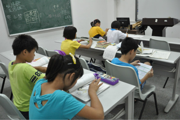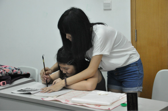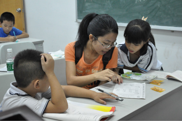 开班当天,后勤员工的孩子们到达微格教学室后,便找到了各自的“老师”开始学习。在辅导过程中孩子们都非常积极,有不懂的立刻问老师,老师也耐心地为他们讲解题目。不管是志愿者们还是孩子们都十分认真地投入到课堂之中。