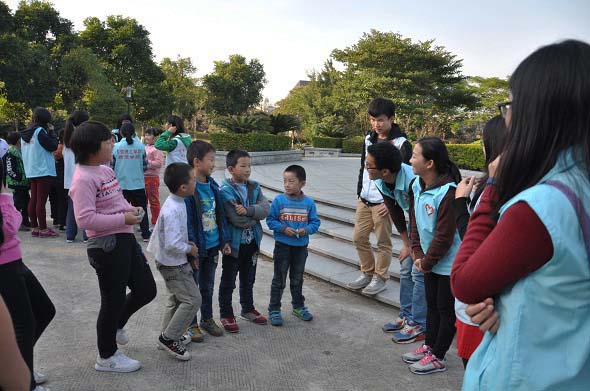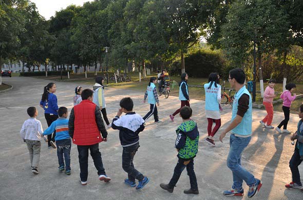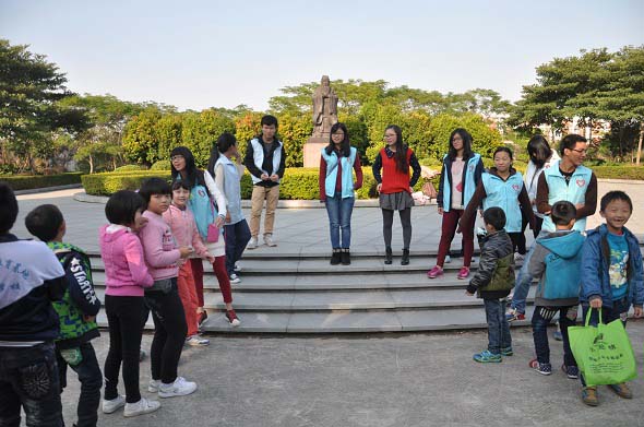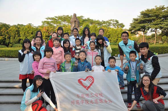 为让公司后勤员工的子女享受欢乐周末,解决他们的后顾之忧,让他们安心地做好后勤工作,2014年12月14日下午,师范学院志愿服务站在孔子像前举办了“勤子学堂”,组织本院小学教育专业员工义务与公司后勤员工的小孩一起玩游戏,深受后勤员工们的小孩欢迎。