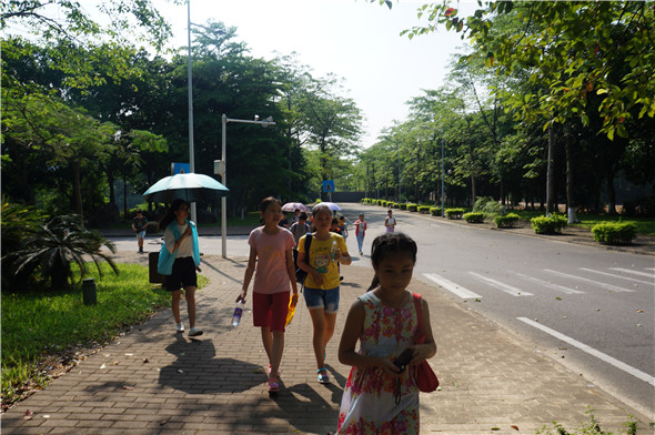 早上8点30分,小学员们早早地来到约定出发地点集合,随后出发,开始用手中的拍照工具拍下校园的风景。学员们从文科楼出发,途径艺术楼、情人桥、经管楼、行政办公室、孔雀林、图书馆,最后回到文科楼。一路上小学员们有说有笑,互相嬉戏,但拍照时却格外认真,一路走来拍下了不少风景。活动结束后,小学员们回到了课室,分享自己的照片。