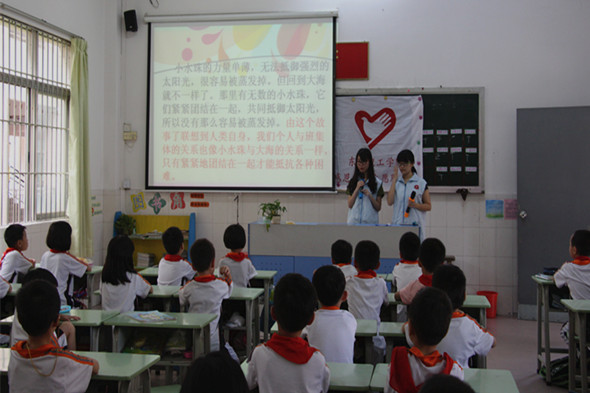 2015年5月28日,师范学院志愿服务站感恩义教队伍来到东莞市大朗镇实验小学,开展以“我是班级小主人”为主题的感恩义教活动。