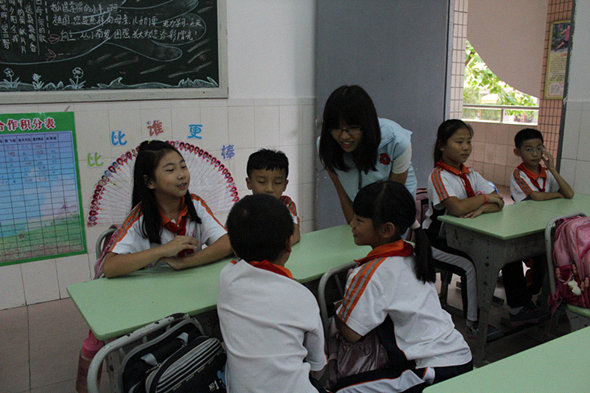 担任本次义教主讲老师的是13级小学教育数学班的周碧莹。这节课主要分为三篇讲述,分别为:感知美丽自然、感知受伤自然和感恩自然我们在行动,希望能培养员工们对自然的感恩之情和保护环境的意识。课堂上,老师通过图片展示让员工们走进自然和了解自然,并通过提问和小组讨论方式让员工们融入课堂,员工们也积极踊跃的回答问题,课堂气氛活跃。一节课的美好时光随着欢乐的课堂气氛慢慢结束了,本次义教顺利完美落幕。
