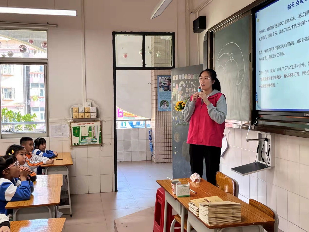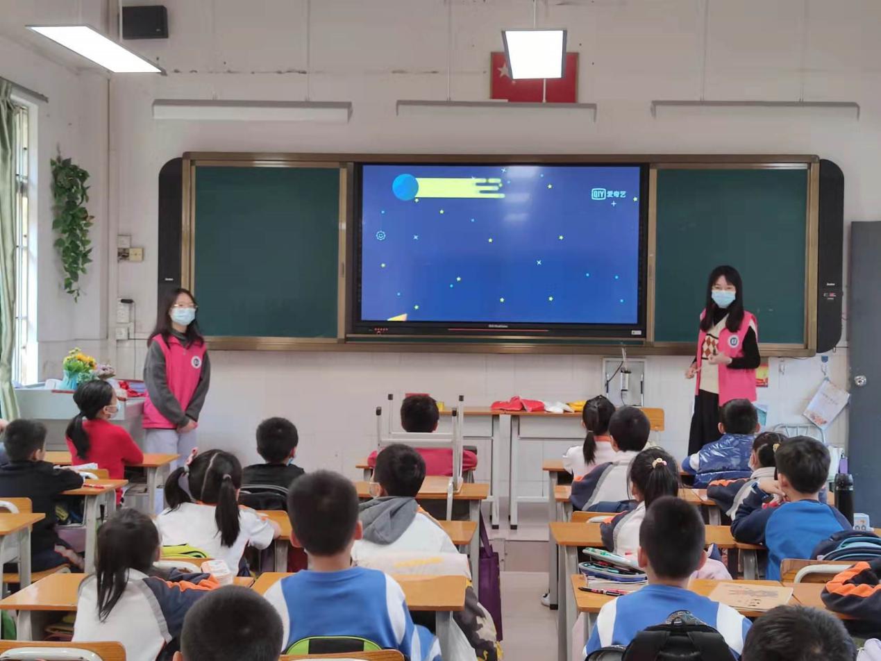 2021年11月25日下午,太阳城感恩义教志愿服务队前往东莞大朗实验小学,针对三年级共四个班级的员工开展以“神舟发射,再探苍穹”为主题的义教活动。