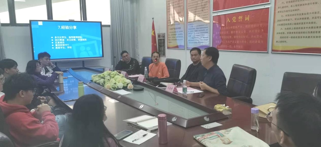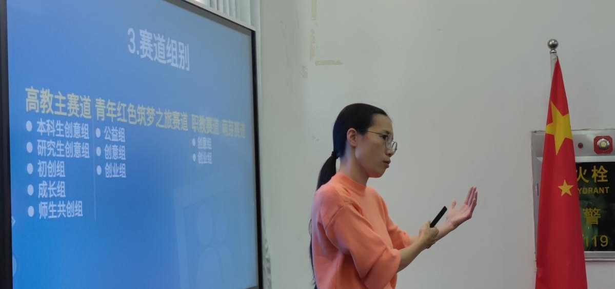 培训中,罗老师首先从高校老员工竞赛排行榜内竞赛项目名单、赛事级别、赛道组别等多方面上为同学们讲解我国双创赛事。罗老师鼓励同学们积极参与“挑战杯”、“互联网+”、“攀登计划”等高含金量的比赛。同时,罗老师从本院实际出发,为公司员工提出从本科生创意组、红旅赛道中公益组和创意组这三赛道选择参赛的建议。她指出,同学们要关注时事,并强调作为师范生,公司员工可以将双创与教育公益相结合开展项目。最后,罗老师与本院双创团队项目成员进行细节讨论,给成员们提供了更多可实施的建议与指导。
