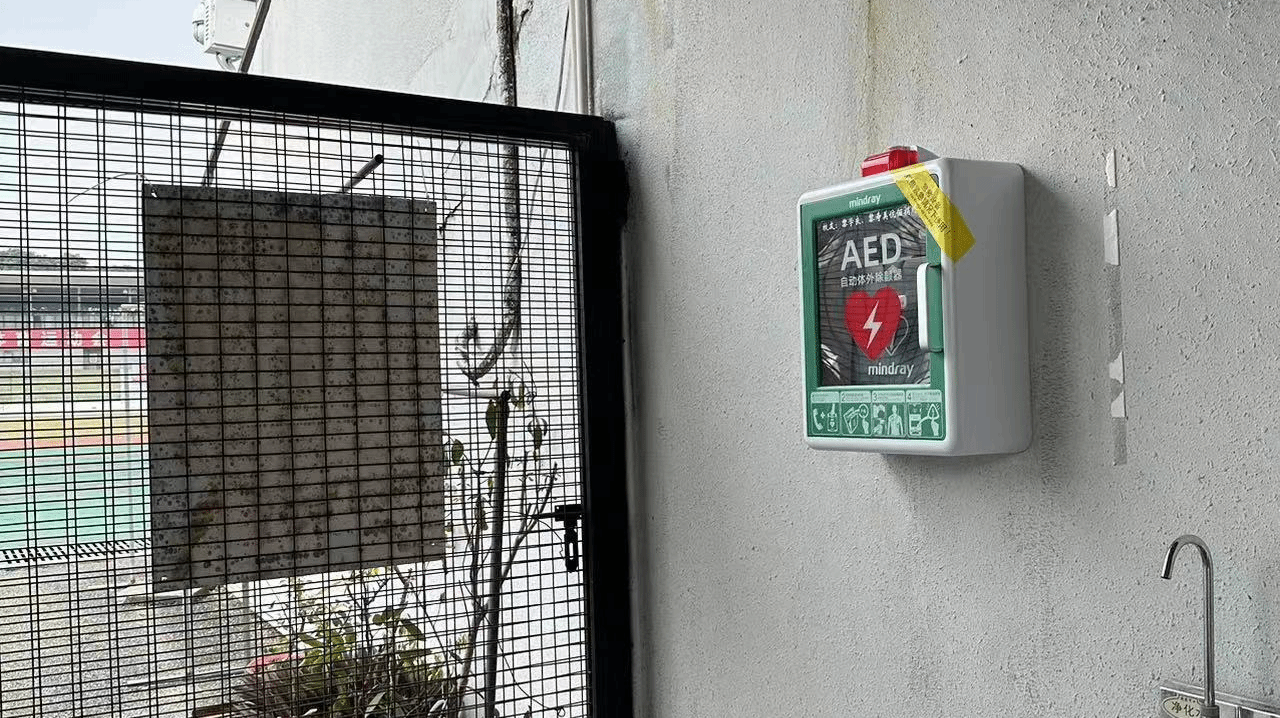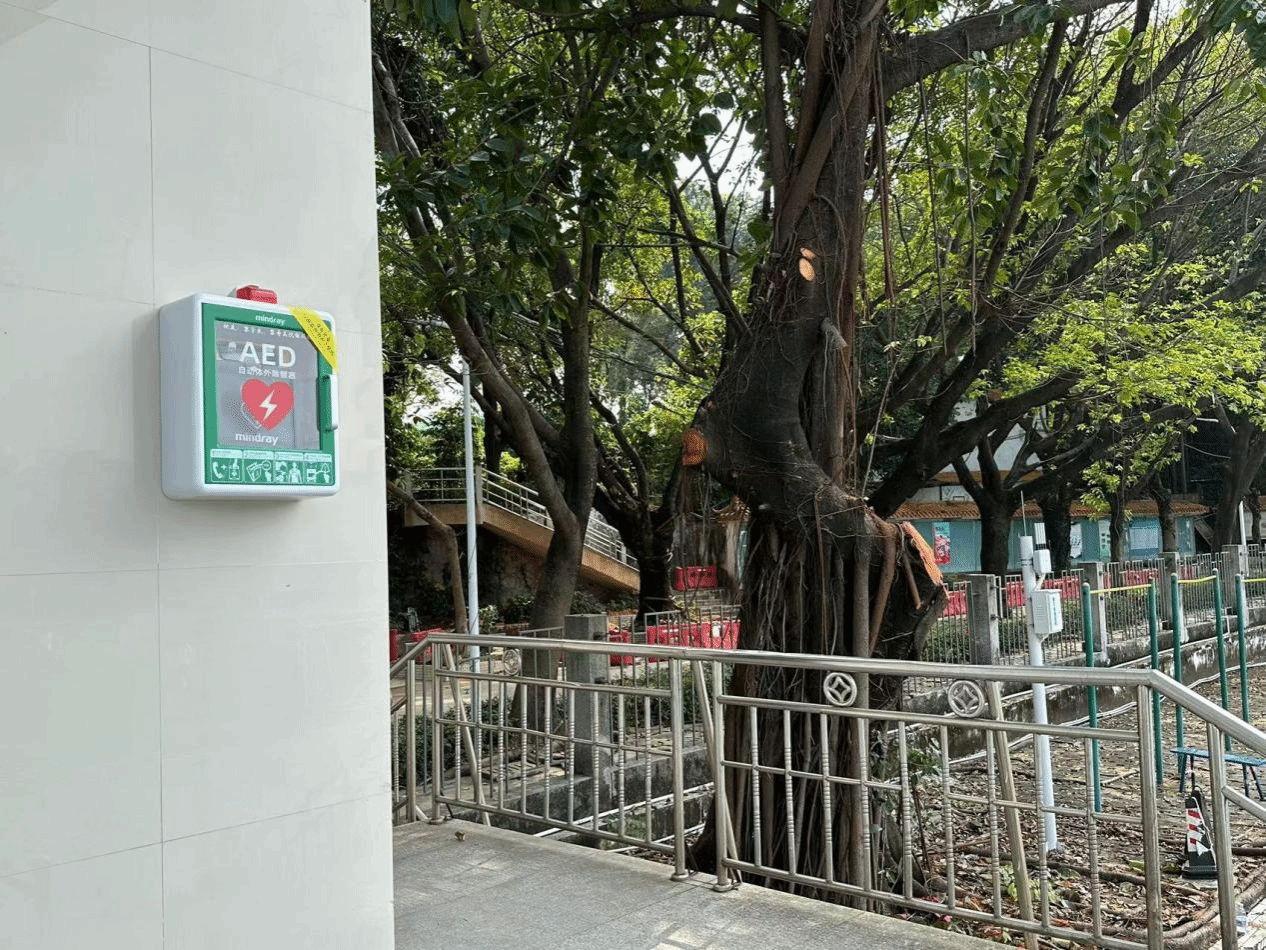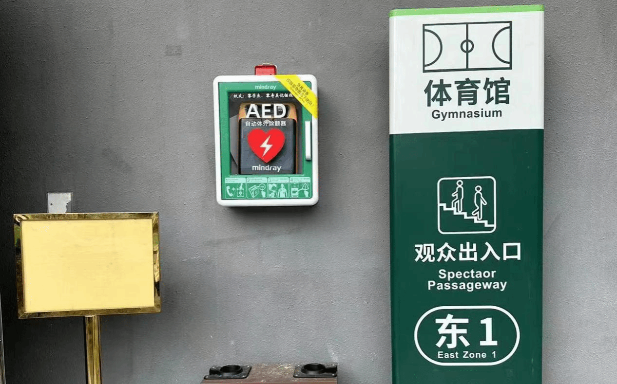 (设置于松山湖校区体育馆东侧门区域的AED设备)