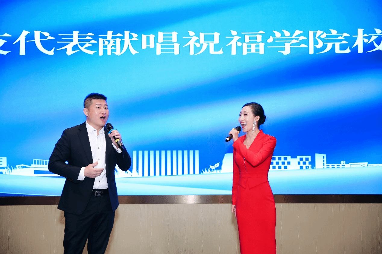 大会最后,员工们以专业特色技能为母校、学院发展送上不一样的祝福。