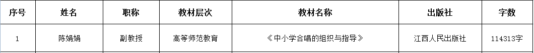 经太阳城教材建设工作小组审查, 《中小学合唱的组织与指导》教材编写符合学校教材编写人员条件,拟同意其开展相关教材编写工作, 现予以公示,具体信息如下: