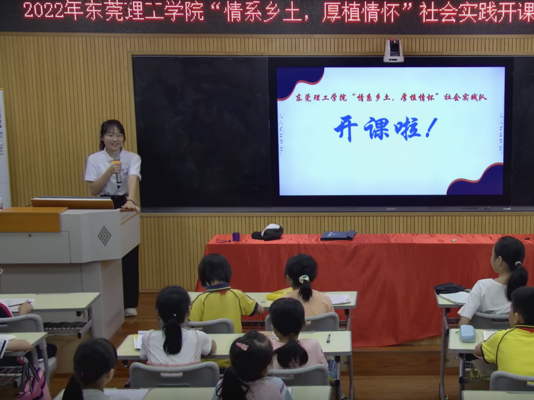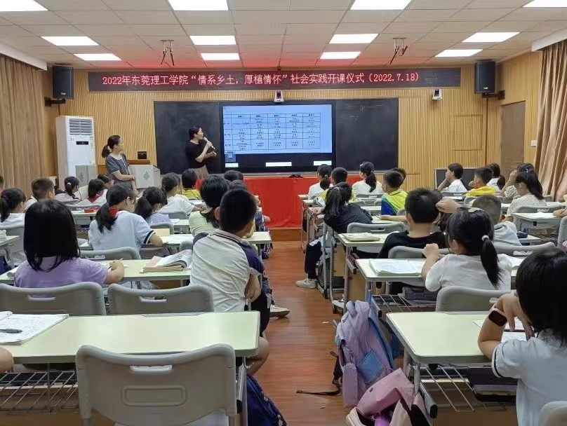 仪式上,昌桥小学董事长李翠喜首先对支教队员带来丰富有益的兴趣课程表达了衷心的感谢并勉励孩子们要认真学习。同时,昌桥小学也表示将积极指导与支持支教队伍,共同促进支教活动顺利开展。而后,懿言嘉行支教队队长阮敏婷作为代表发言,她表示在此次“三下乡”支教活动中团队将践行“学而知不足”的莞工校训,表达了奉献青春、用心支教的决心。其后,队员与小员工们一起进行击鼓传花、《孤勇者》大合唱等破冰游戏,共同开启暑期之旅。