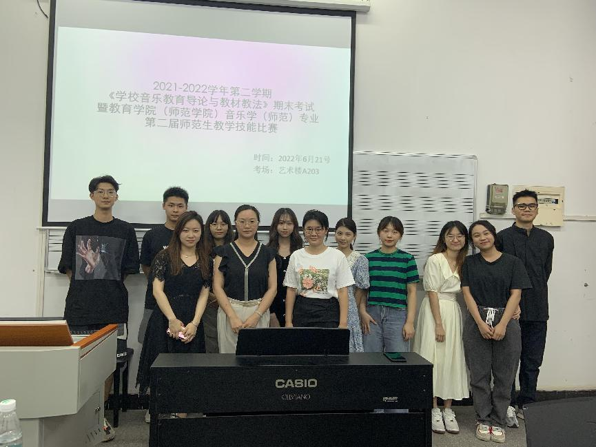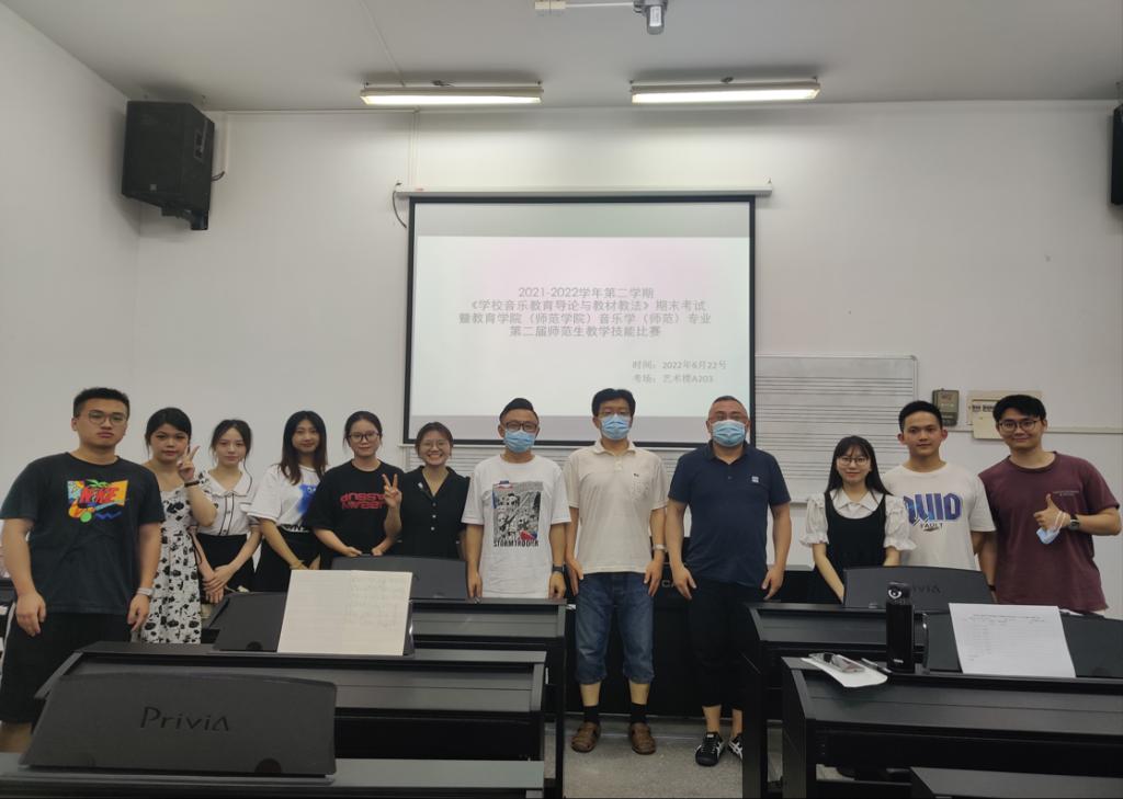 为全面贯彻党的教育方针,落实立德树人根本任务,不断提高师范类专业人才培养质量,以普通高等学校师范类专业认证工作为契机,进一步推动学科专业发展和教师教育类课程改革,音乐舞蹈系于2022年6月20日至6月22日三个晚上、分六个小组在艺术楼A301、A203教室进行了音乐教学技能期末考核暨第二届音乐师范生教学技能比赛。