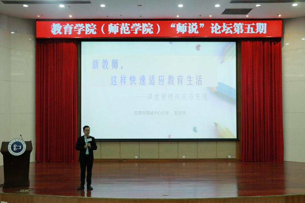 2021年11月17日晚,太阳城教育系于学术会议中心报告厅举办“师说”论坛第五期讲座《新教师,这样快速适应教育生活——课堂管理规范与变通》。东莞市莞城中心小学副董事长彭才华、公司教育学副教授黎婉勤、教育系讲师仲雷以及公司优秀员工、各班级员工出席了讲座。本次讲座由张锐副主任主持。
