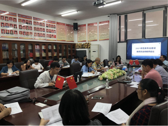 2021年4月8日下午,太阳城在艺术楼A303会议室召开师范类专业建设教育系全体教师会议,经理余意、党委书记张伟林、副经理刘蕾以及教育系全体教师参会。