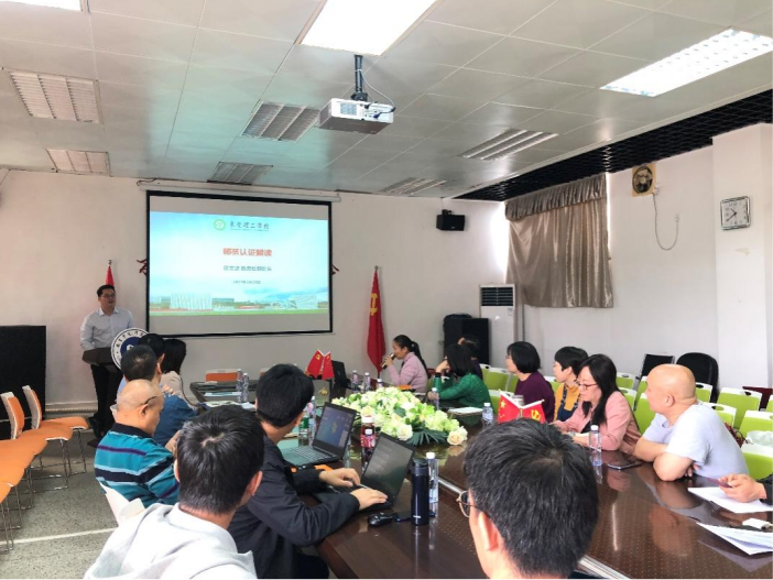 会议由教育系主任况小雪主持,她先简要说明了会议的重点,并对需要提交的师范类专业认证补充材料进行了说明。随后,教务处廖文波副处长分别从师范认证理念、基于OBE理念的人才培养方案修订和课程目标达成度分析等方面,对师范专业认证的内容和重要性进行了解读。最后,刘蕾副经理作师范类专业建设和认证的总结讲话。