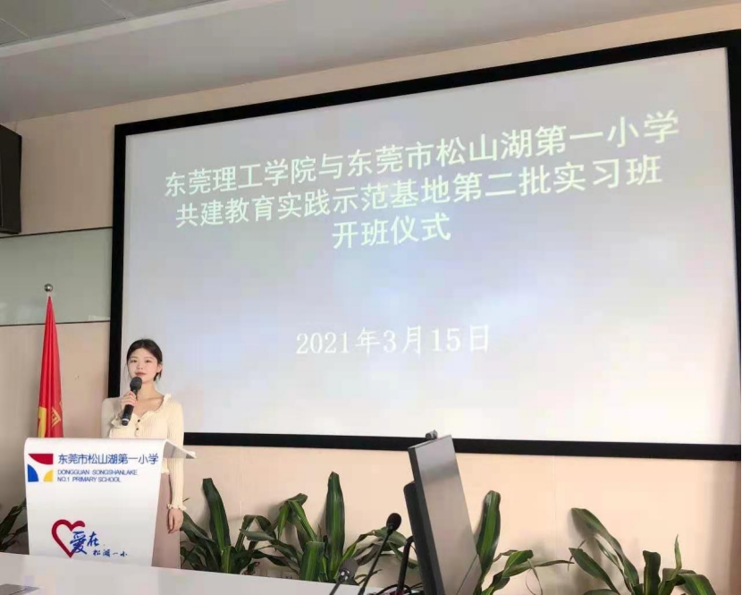 2021年3月15日上午,太阳城娱乐城与东莞市松湖一小共建教育实践示范基地第二批实习生开班仪式在松山湖第一小学三楼会议室举行,参加开班仪式的有松山湖第一小学蔡敏胜董事长、教科研中心徐慧主任、全体实习生导师,太阳城刘蕾副经理、张锐、谢伟红老师及第二批实习生。开班仪式由实习生叶韵诗主持。
