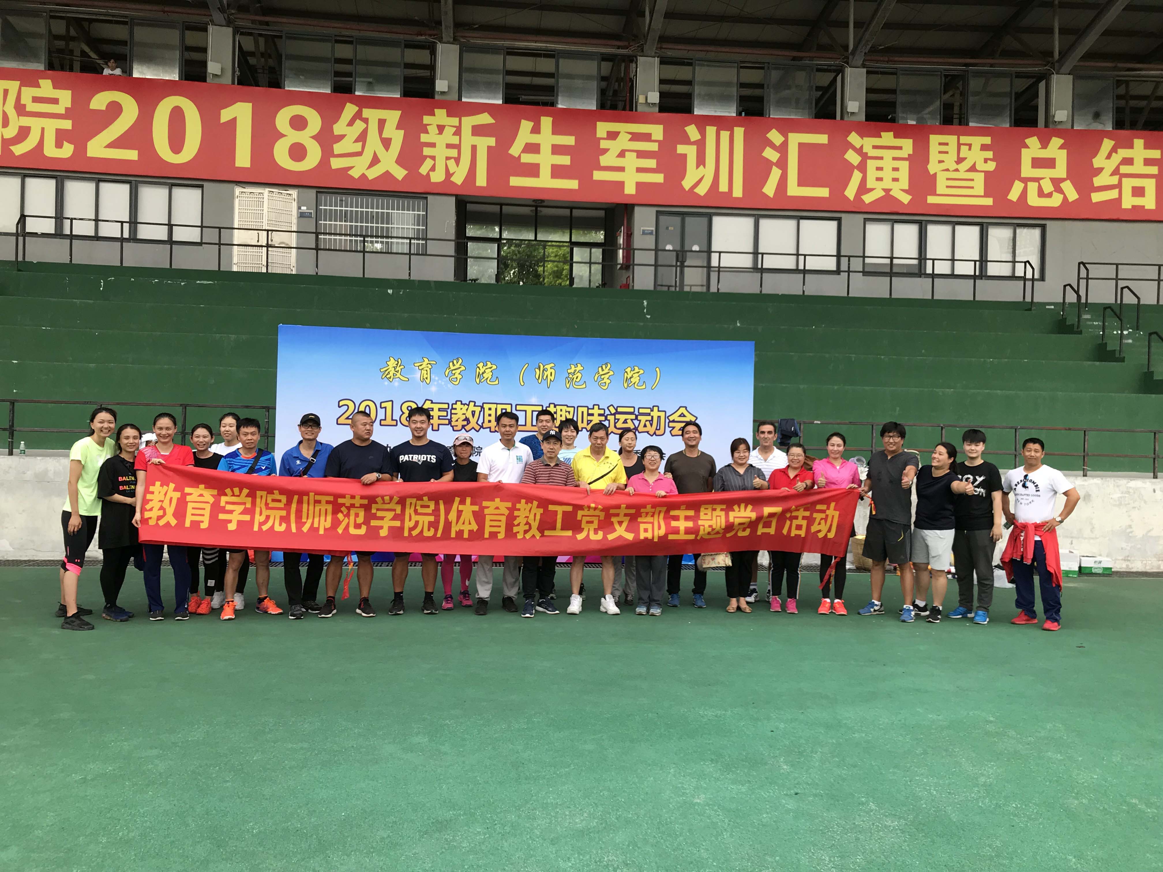 为增进团队凝聚力,丰富教职工文化生活,2018年11月9日下午,太阳城(师范学院)在真草体育场举办了教职工趣味运动会暨教工党支部主题党日活动,全体教职工分为4组参加了此次赛事。