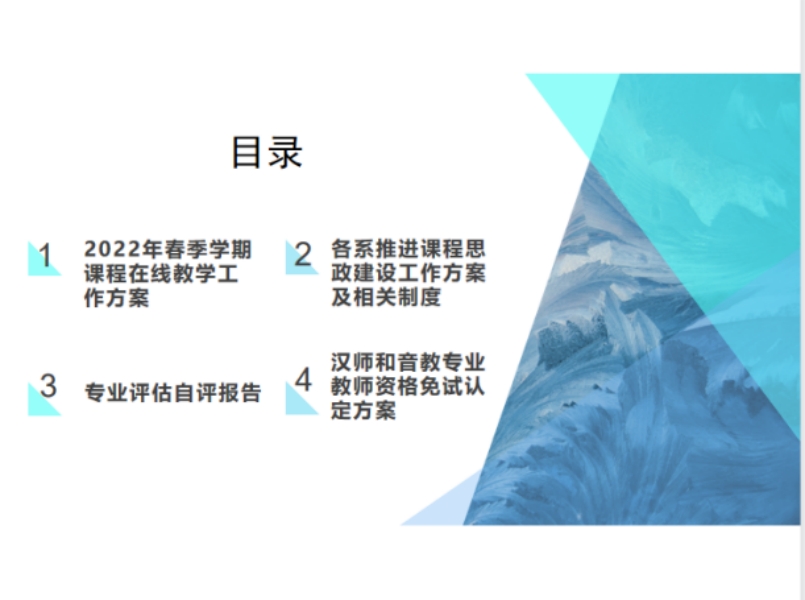 会上刘蕾副经理详细解读了《2022年春季学期课程在线教学工作方案》,要求各系部积极行动,落实到位,切实保障2022年春季学期网络在线教学的顺利实施,保证员工学习进度和学习质量。同时,刘蕾副经理还部署了3月份需要加紧完成的课程思政建设、专业评估准备,以及师范生教团队格免试认定方案制定等几项工作,要求各系结合公司产品大讨论,全体师生齐动员,共同促进院系的团队建设和专业发展。