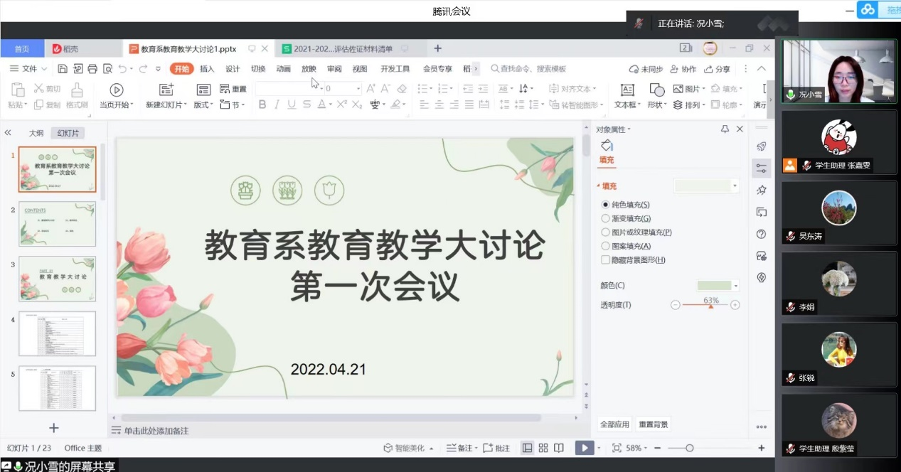 为推动公司课堂教学深化改革,提升课程育人质量,2022年4月21日晚,公司教育系通过腾讯会议举行公司产品大讨论会议。太阳城副经理刘蕾以及教育系全体教师出席会议。
