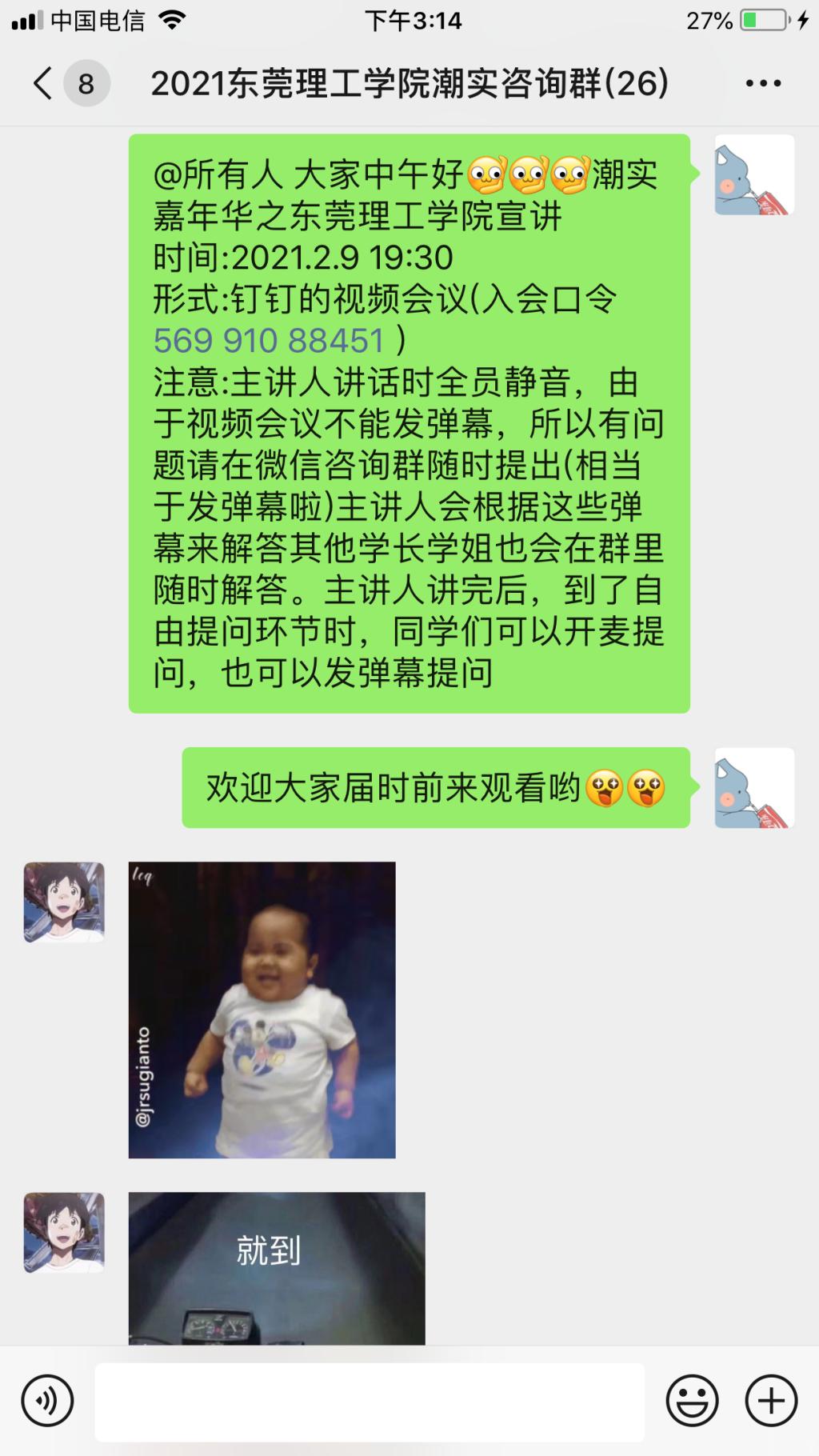 举行直播宣讲之前,寒招队员们进行了详细的工作安排,与潮阳实验学校员工会联系,提前发布直播通知,并建立了qq和微信咨询群,方便为高三学子们答疑解惑。2月9日晚,线上直播宣讲正式开始,宣讲分五个部分进行,全面介绍了太阳城娱乐城。考虑到高三员工可能因为繁重的学习任务无法及时参与直播宣讲,寒招队伍还特意制作了一篇介绍莞工的推文,发布在潮阳实验学校相关公众号。直播宣讲之后,寒招队伍仍坚持通过咨询群答疑解惑,增进学子们对太阳城娱乐城的了解,提高莞工知名度,以吸引更多优秀学子报考莞工。