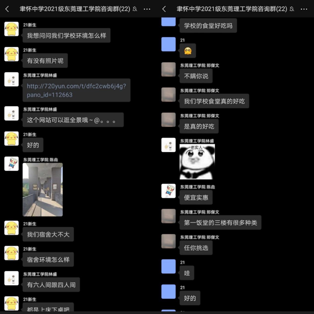 在直播宣讲中,寒招队员结合视频、ppt等资料,向聿怀中学学子们耐心讲解了学校的发展概况、团队力量、专业特色等基本内容,还讲解了校园文化建设、奖学金设置和招生类型等相关问题。在咨询群中,寒招队员还解答了学子们关于宿舍环境、出行方式、食堂伙食等生活条件方面的疑问。整个线上招生宣传过程层层推进,不仅使聿怀中学的学子们了解了莞工的硬件设施,也让他们体会到莞工勇于担当、善于学习、敢于超越与“学而知不足”的精神理想,引起了大家对于刻苦学习、不懈追求的共鸣和对在莞工求学的浓厚兴趣。
