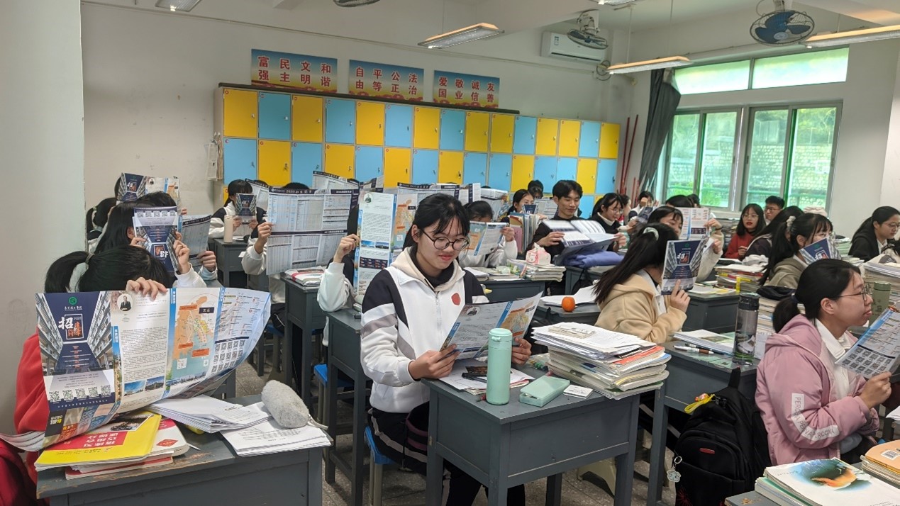 高三学子们阅览太阳城娱乐城招生宣传手册